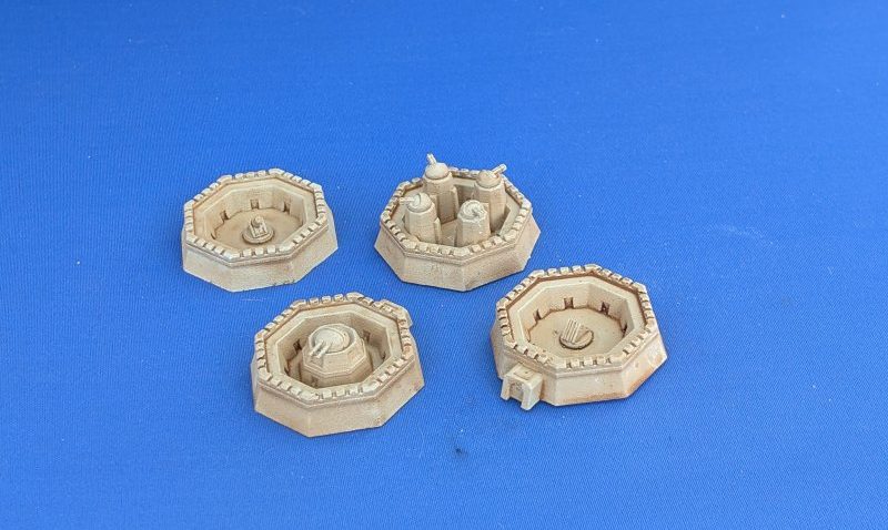 And lastly, we’ve come up with these modular Syrtian castle components, similar to our existing medieval castle. So far there are walls, multiple types of tower and walls with gun mounts and towers with turrets. There’s currently no way in – the gateways are still in the mould, as is the main keep!