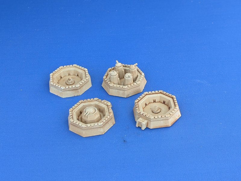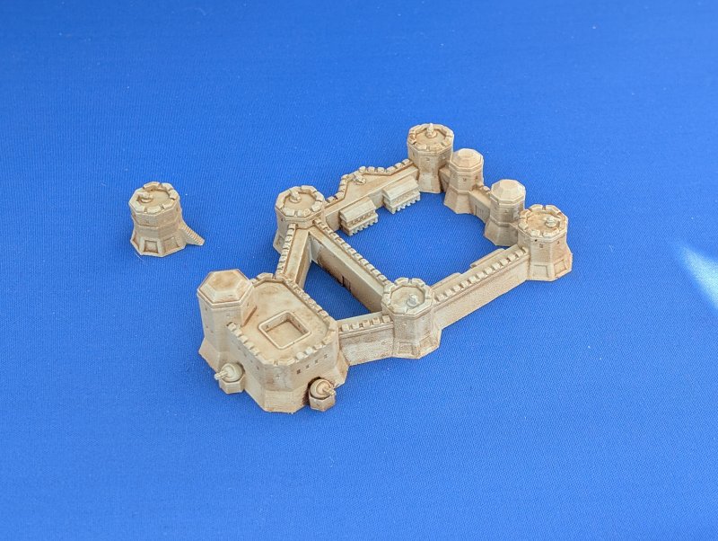 This much larger fortress has a mix of open gun mounts and small turrets with a divided courtyard. There’s also a separate satellite tower, just because there was a big gap in the mould 🙂