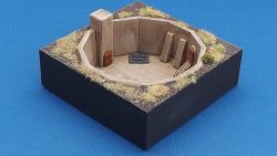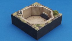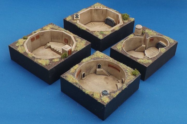 The models are one-piece resin castings. They’re all cast as simple square or rectangular pieces, and all are 25mm deep – the idea is for them to be modelled into a terrain baseboard or hill/mesa using 25mm thick insulation foam (inexpensive white polystyrene can be had from Wickes in the UK for just £7 for an 8’x4′ sheet). I’ll write an article on this in the near future, I promise.