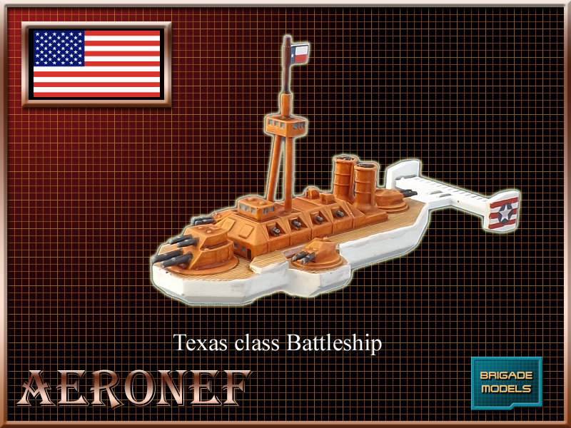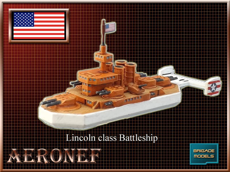 Today sees the final part of stage #1 of our programme to update all of our older Aeronef models. The final one of the big six major powers, the USA, has at last received the planned overhaul of their three older capital ships. The Texas, Maine and Lincoln battleships have all been replaced by new resin and metal designs, joining their counterparts in the other aero-navies of the world.