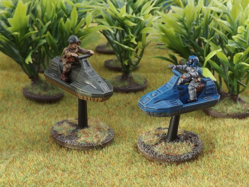 New this week we have some skimmers to get you infantry zipping about the battlefield at top speed. These are small, one-man hover vehicles used by some infantry units in the Hammer’s Slammers universe either in place of or as a supplement to normal APCs.