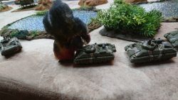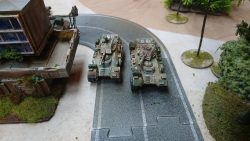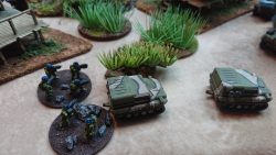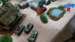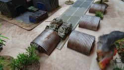 I recently had the pleasure of resuming my friendly rivalry with Hammer’s Slammers:The Crucible author John Treadaway with our first game for some time in his splendidly-appointed “cabin in the woods” gaming room. I faced my brand new New Ukrainian army off against John’s force of Thunderbolts, managing a tight victory at the end. John’s written up the game on the Slammers website, so I’ll content myself with a few pictures for you to browse here and then you can go off and read his report and see lots more photos.