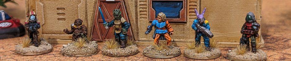 There are four packs of six figures, each a random mix of humans and aliens (and some unknowns – who knows what’s under those helmets ?). There’s lots of blasters, the odd prosthetic limb, and even a force sword or two.