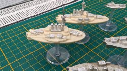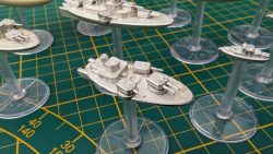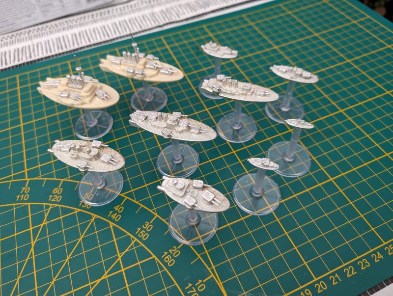 Today’s offering is a redesigned Scandinavian Union fleet for Imperial Skies. These ten new models replace the seven models in the existing fleet, plus some new designs for good measure. The two capital ships now have resin hulls, and they all have brand new turrets – and the first impression of them is that there are a lot of turrets!
