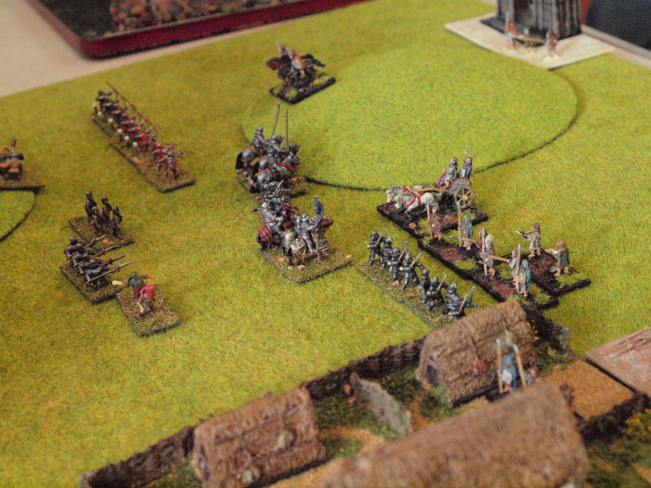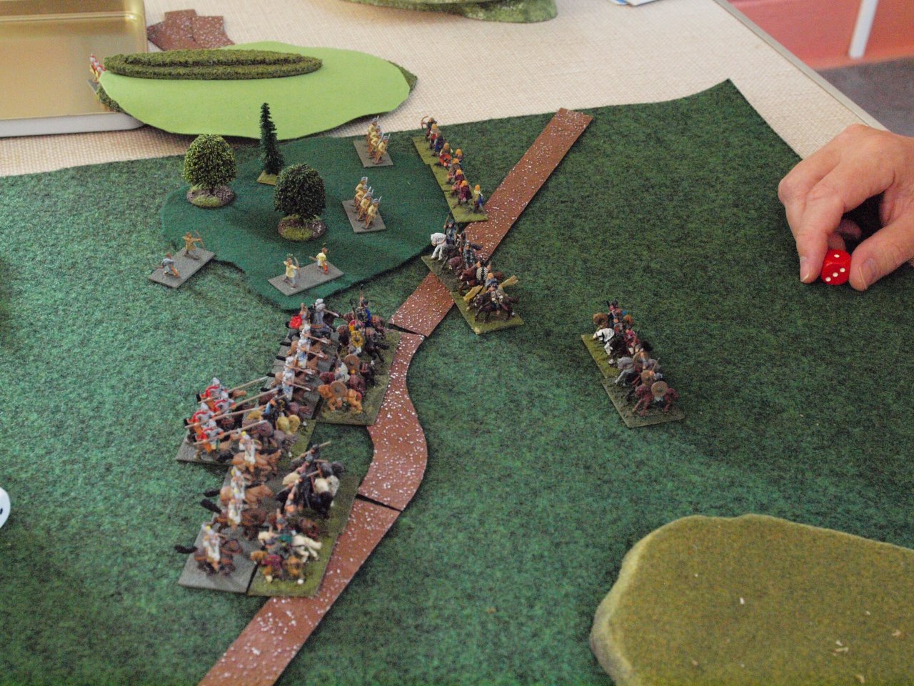 So, with players and armies all on the score sheet it was just a matter of getting on with it. Mike got off to a good start. Not only did he win his game but he also claimed the bonus for first unit killed in the tournament. Paul Lymath also got off to a good start, giving Paul French (fielding a French Ordonnance army – see what he did?) a good pasting.